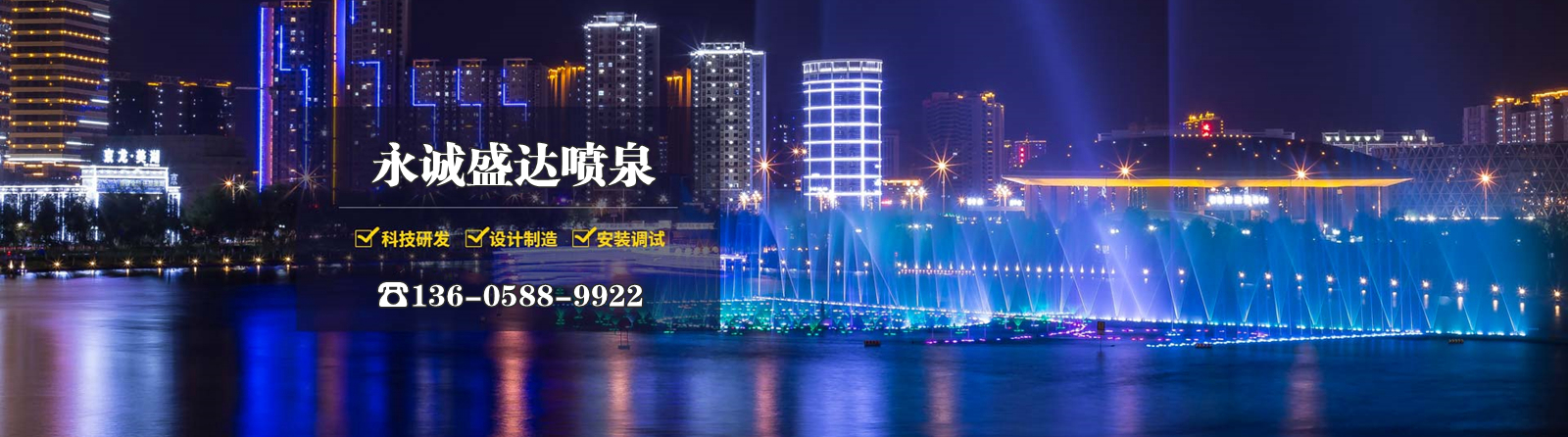 永誠(chéng)盛達(dá)環(huán)保工程有限公司是一家專業(yè)從事噴泉設(shè)計(jì)、噴泉施工、噴泉安裝、噴泉改造、噴泉維保的公司。我公司噴泉種類涵蓋:音樂(lè)噴泉、旱地噴泉、超高噴泉、漂浮噴泉、雕塑噴泉、水幕電影等各類噴泉。從噴泉設(shè)備到工程施工,我們都精益求精,力求為每一個(gè)客戶打造放心的噴泉工程,我們的噴泉案例遍布全國(guó),如果您有需求,請(qǐng)打電話咨詢離您近的我們案例進(jìn)行考察。期待與您合作!